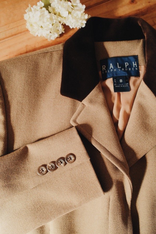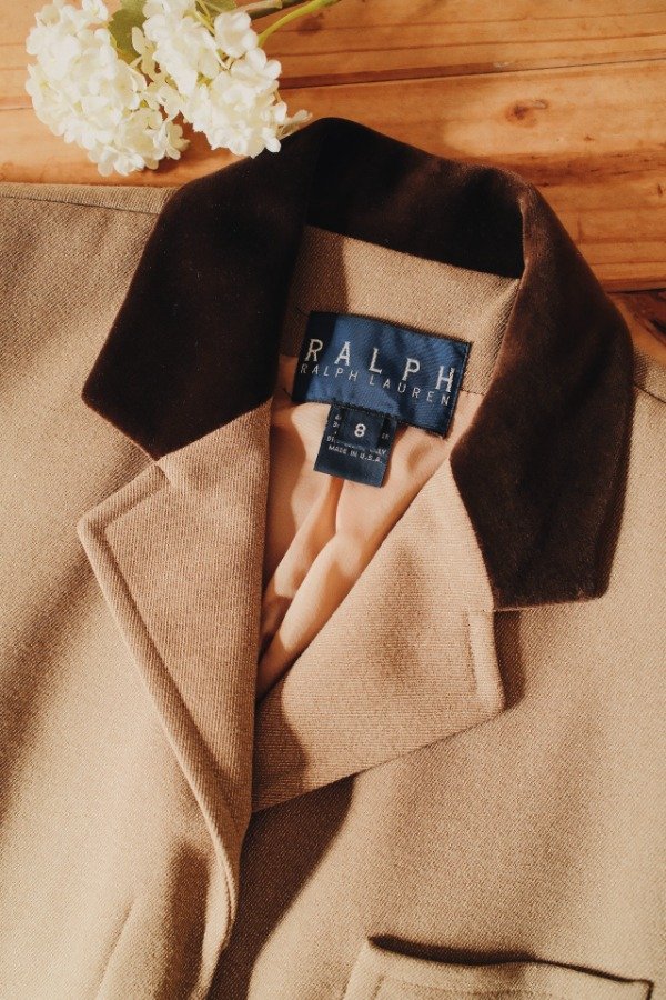 Tapado Ralph Lauren hecho en USA (Union Made) con cuello de terciopelo, botones y bolsillos.