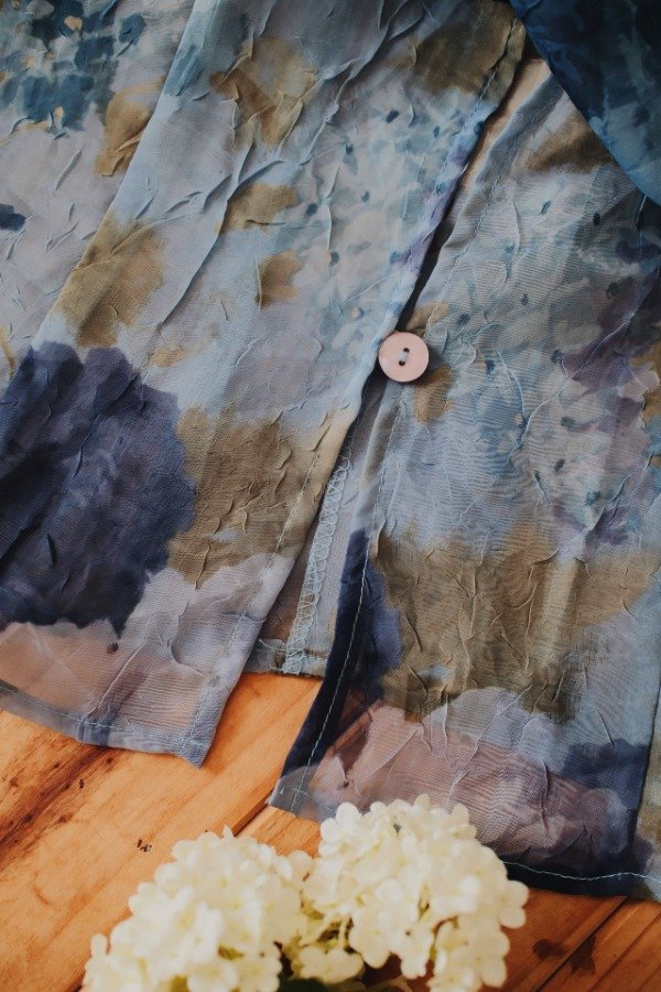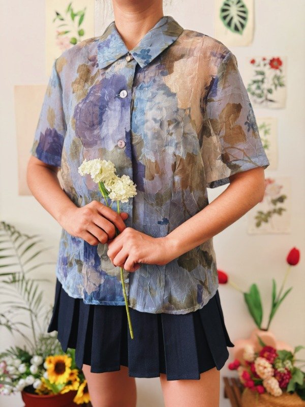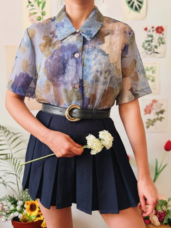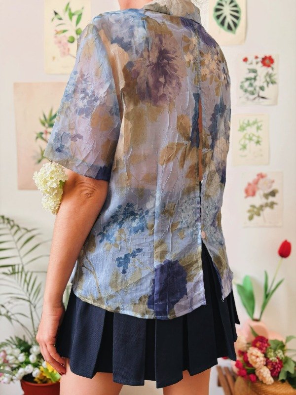 Camisa de gasa estampada con botones nacarados, tajo y un botón en la espalda. Con etiquetas originales.