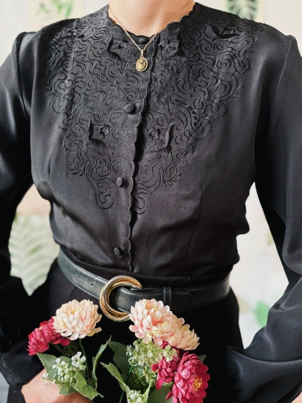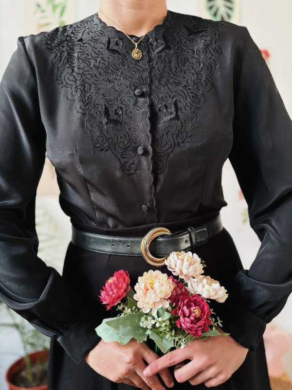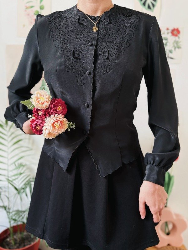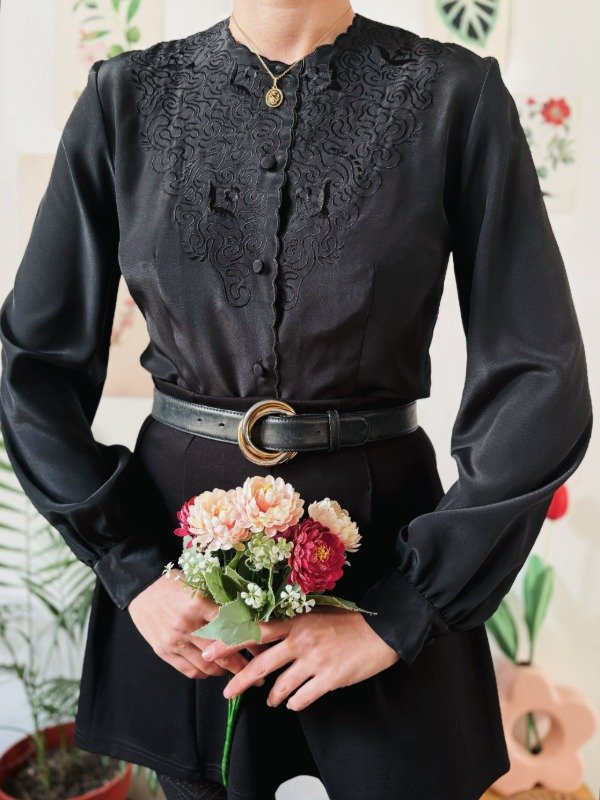 Camisa bordada con botones entelados.
