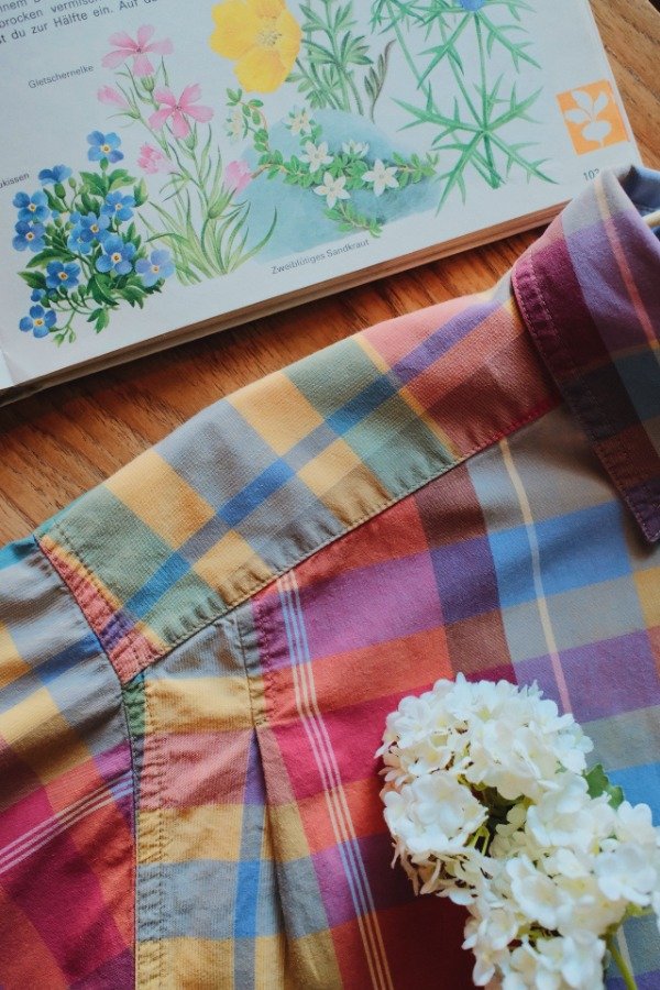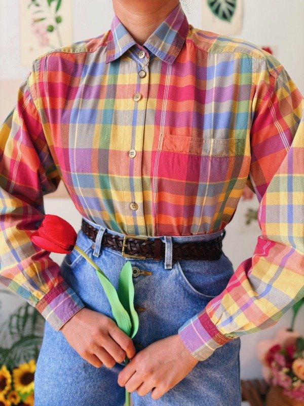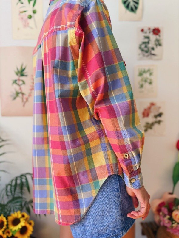 Camisa Liz Clairbone a cuadros con botones y un bolsillo. Tiene dos botones de repuesto.