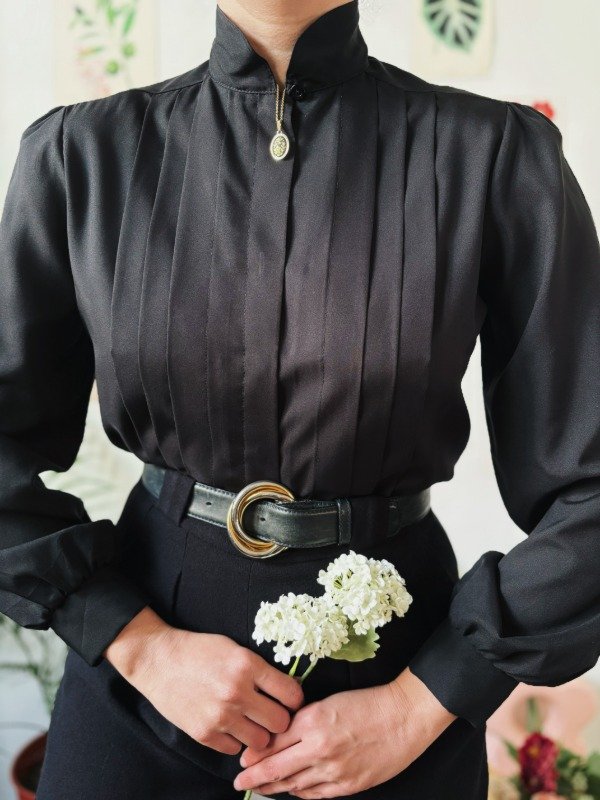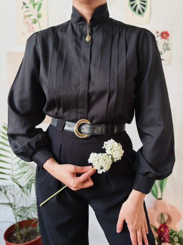Camisa hecha en USA con tablas y botonera escondida.