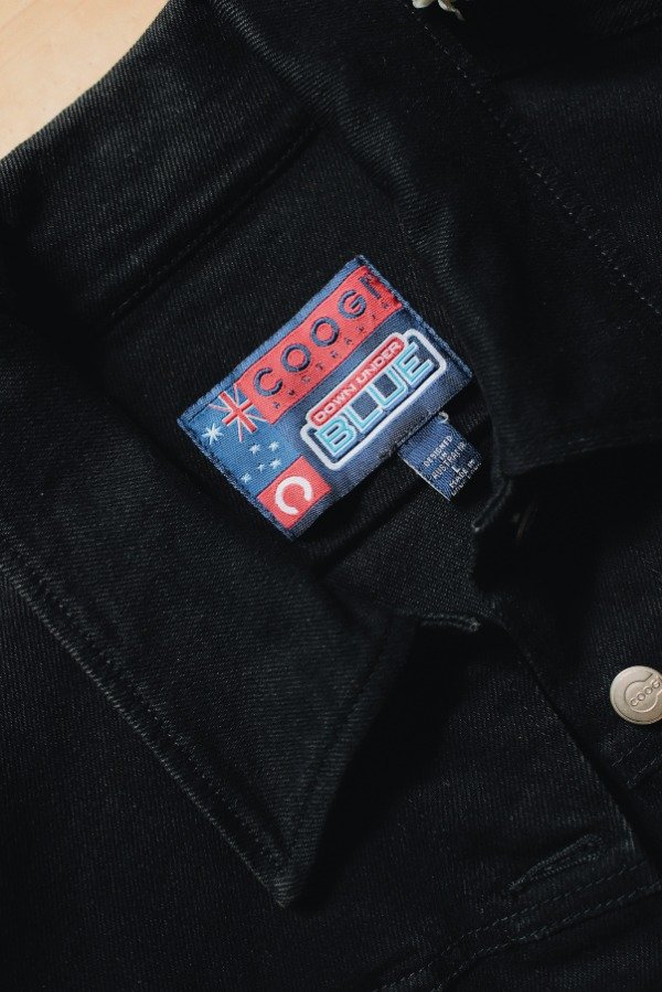 Campera de jean Coogi diseñada en Australia, con botones metálicos y bolsillos.