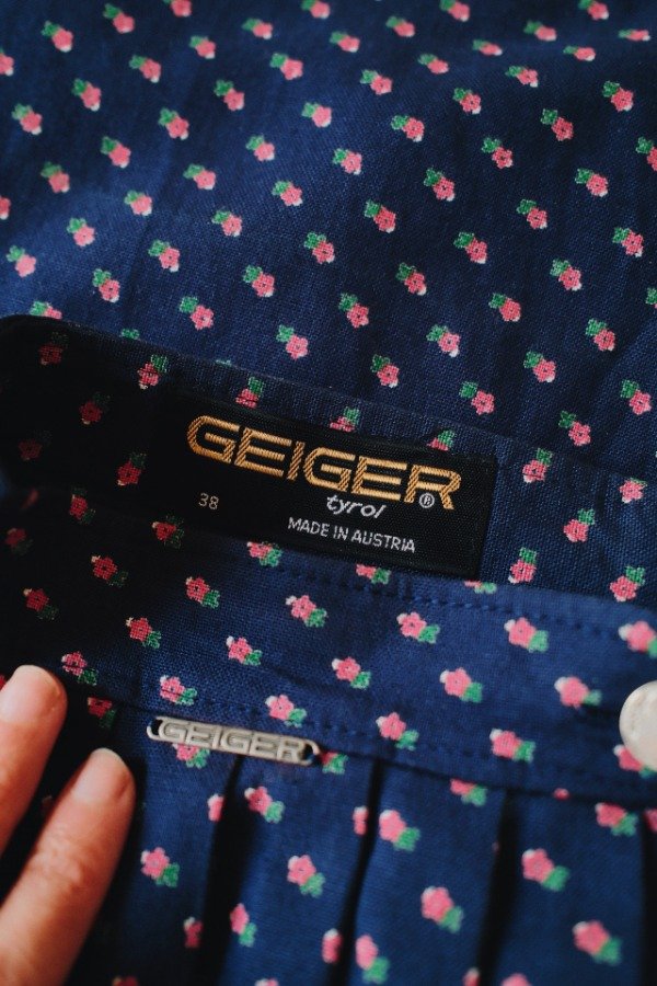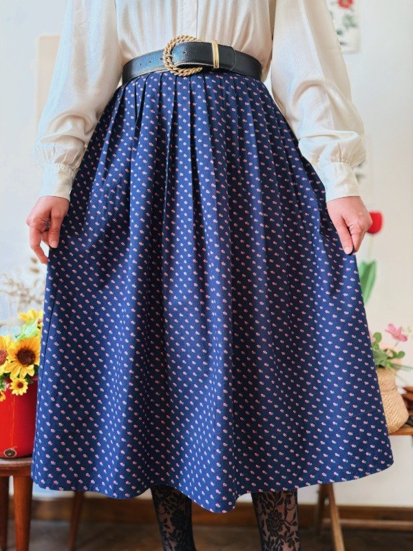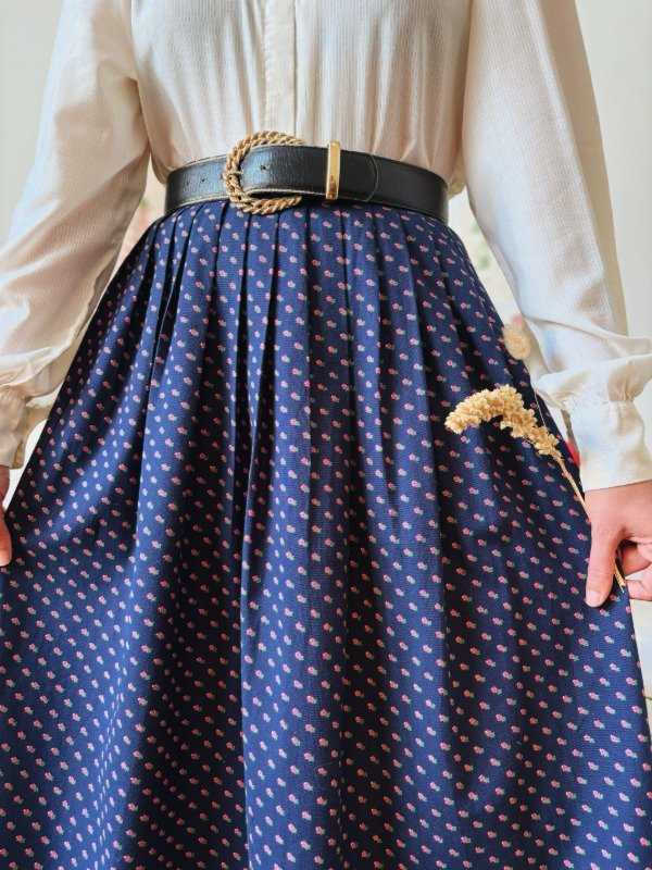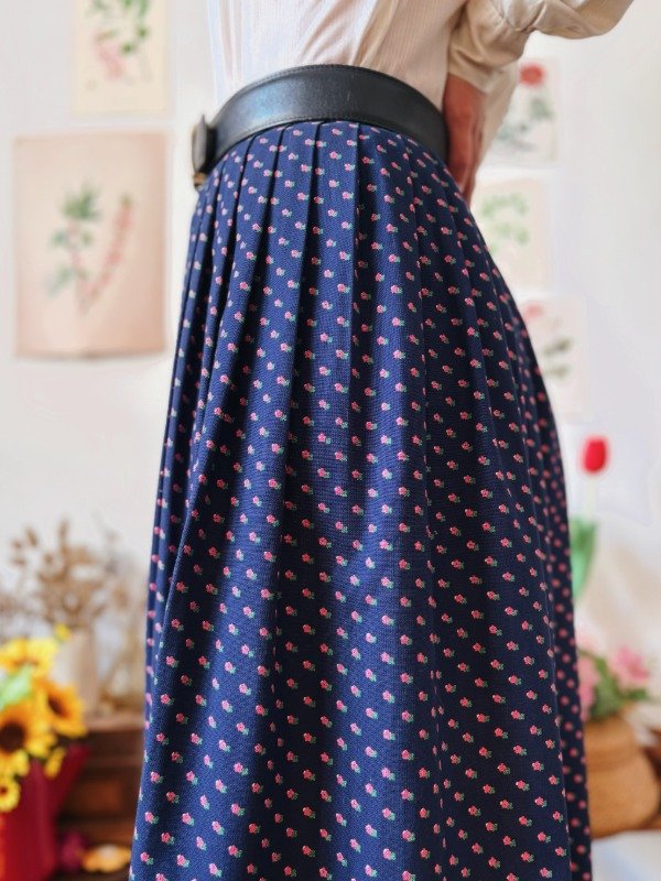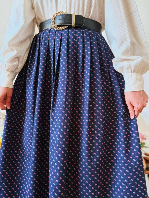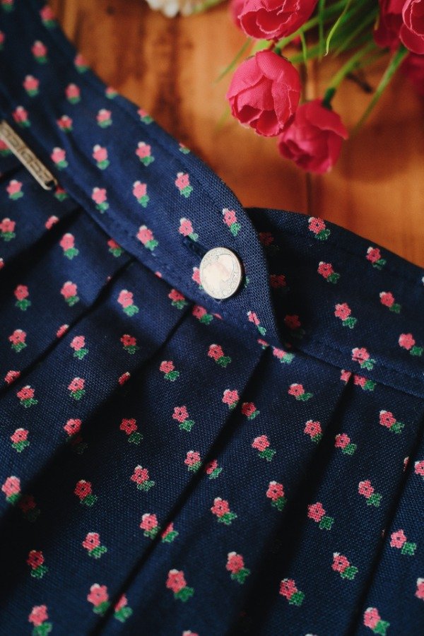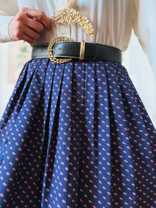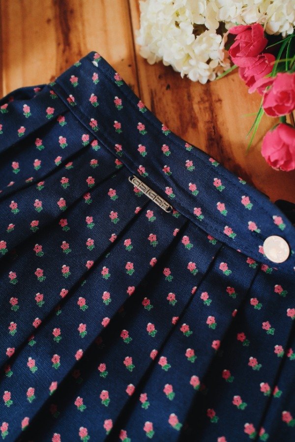 Falda hecha en Austria con tablas, cierre metálico y un botón de metal.