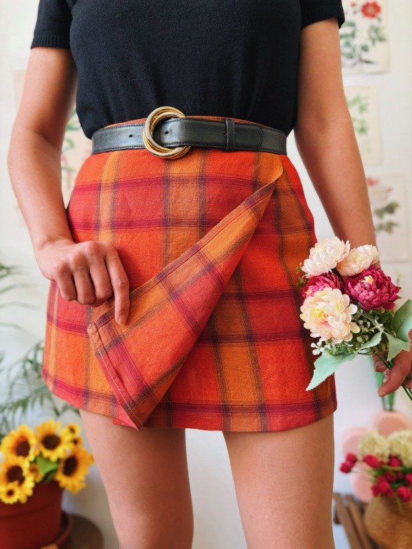 Minifalda Laura Ashley tipo portafolio con dos botones.