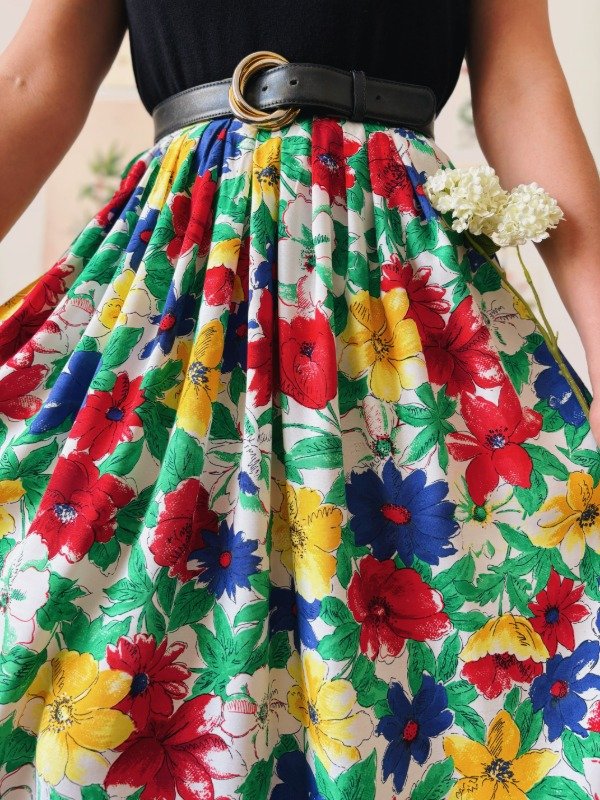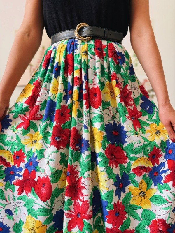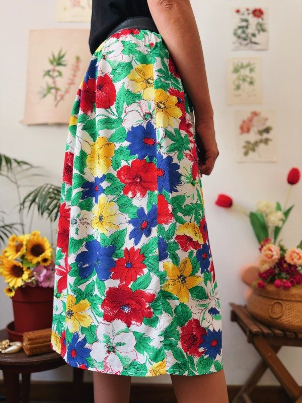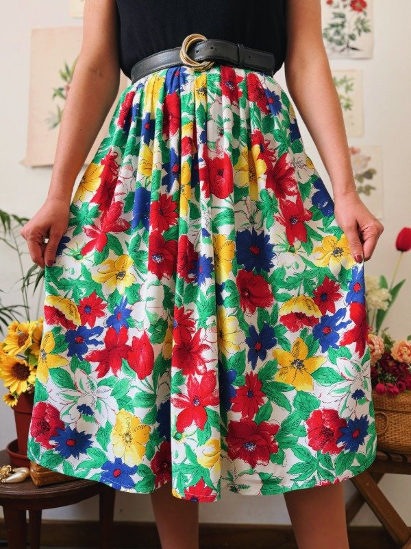 Falda hecha en Alemania, estampada con tablas, bolsillos, un botón y cierre trasero.