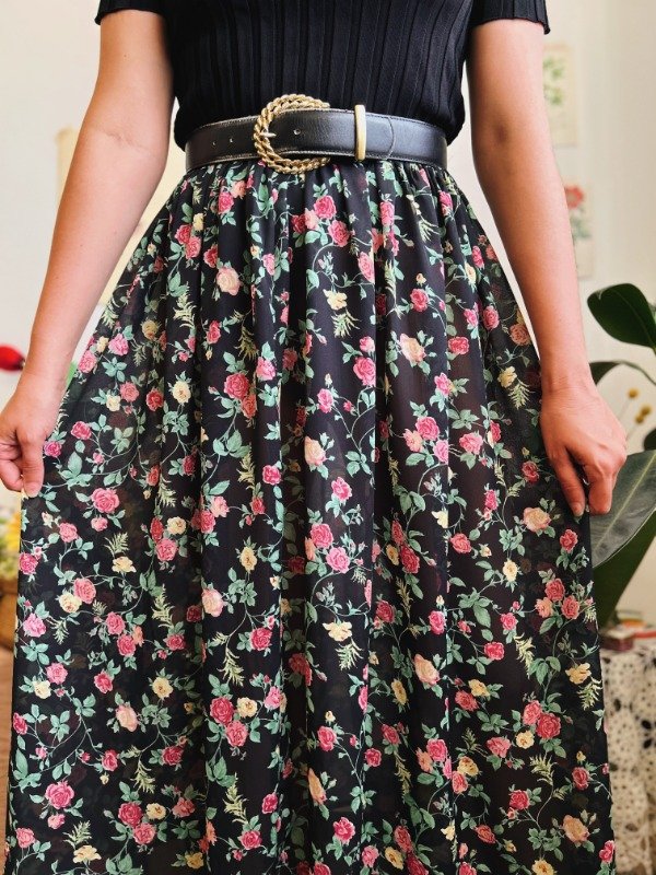 Falda de gasa estampada hecha en USA con cintura elastizada.