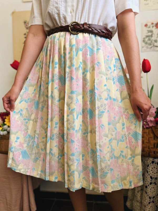Falda Leslie Fay con tablas y elástico en la cintura.