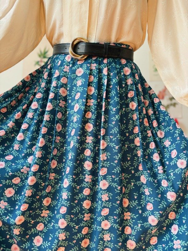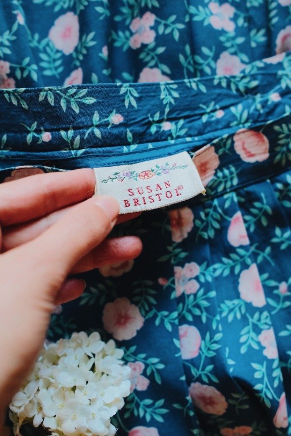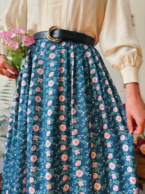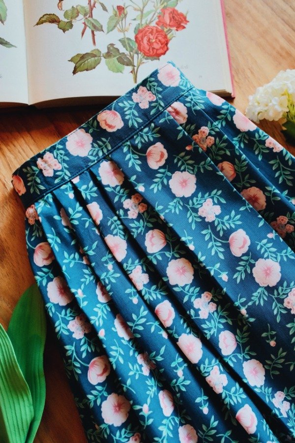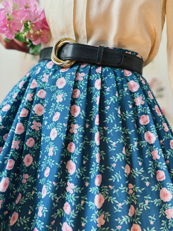 Falda Susan Bristol hecha en USA con tablas, un botón y cierre.