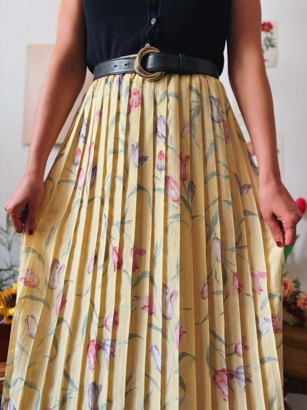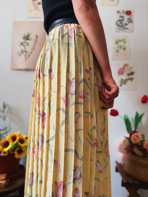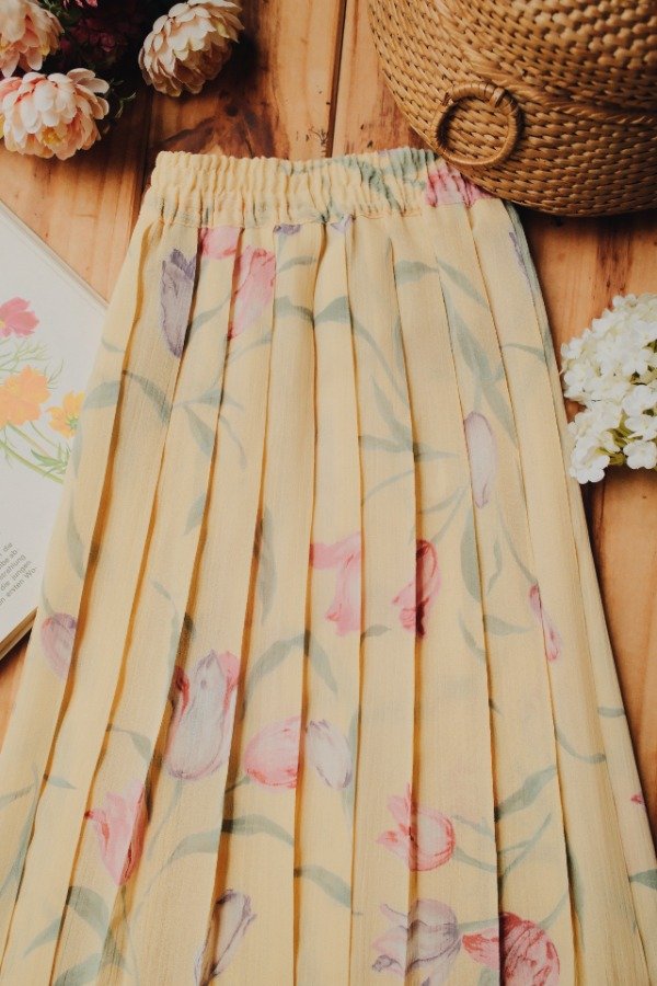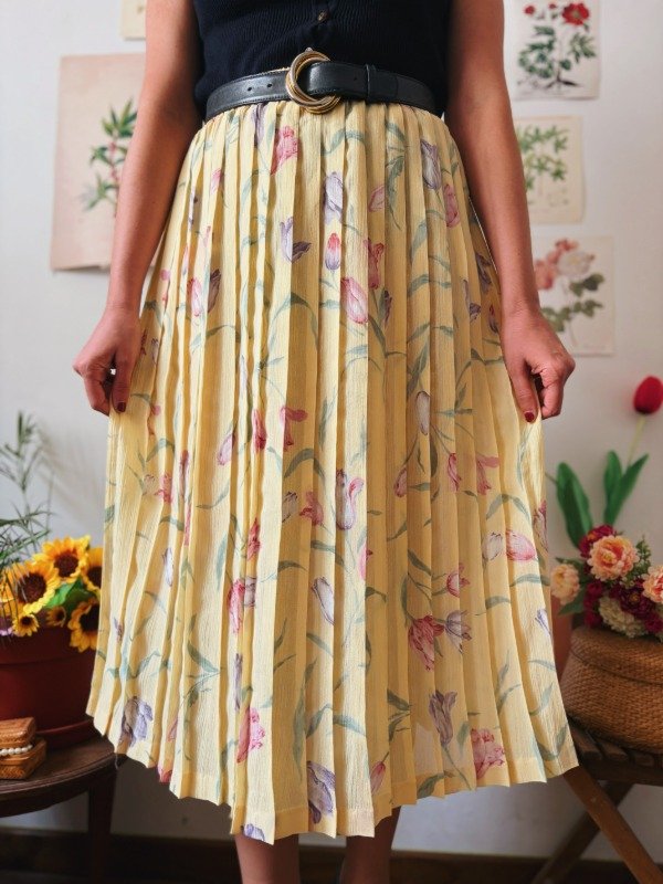 Falda con tablas y cintura elastizada.