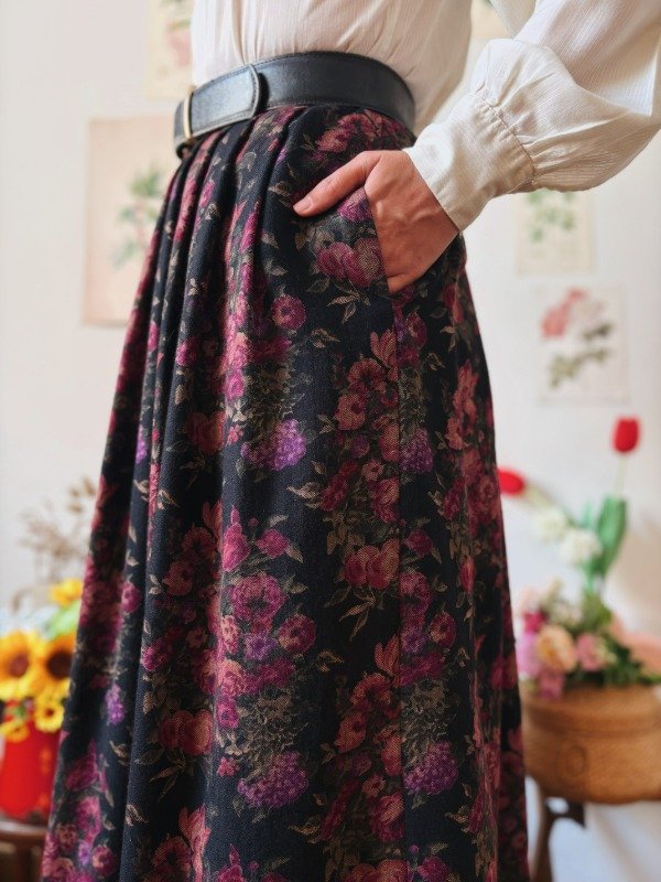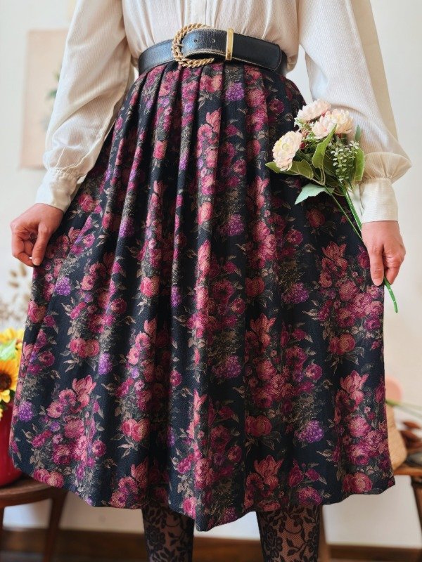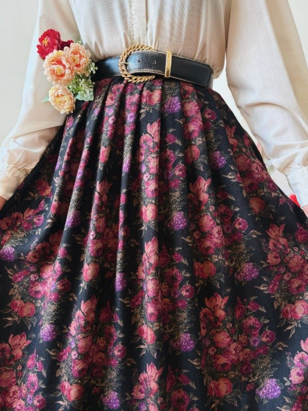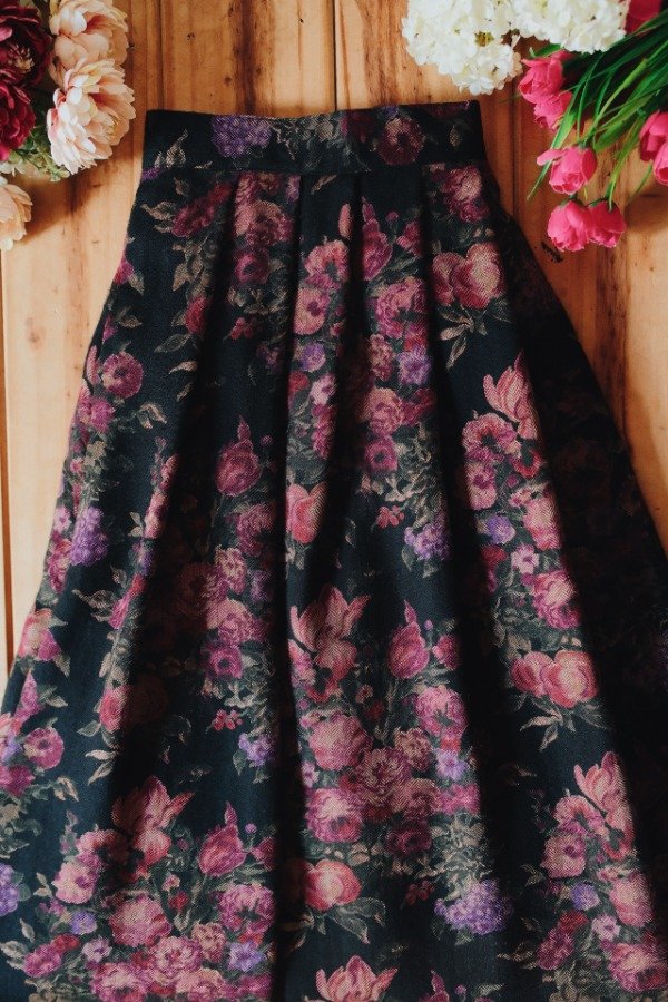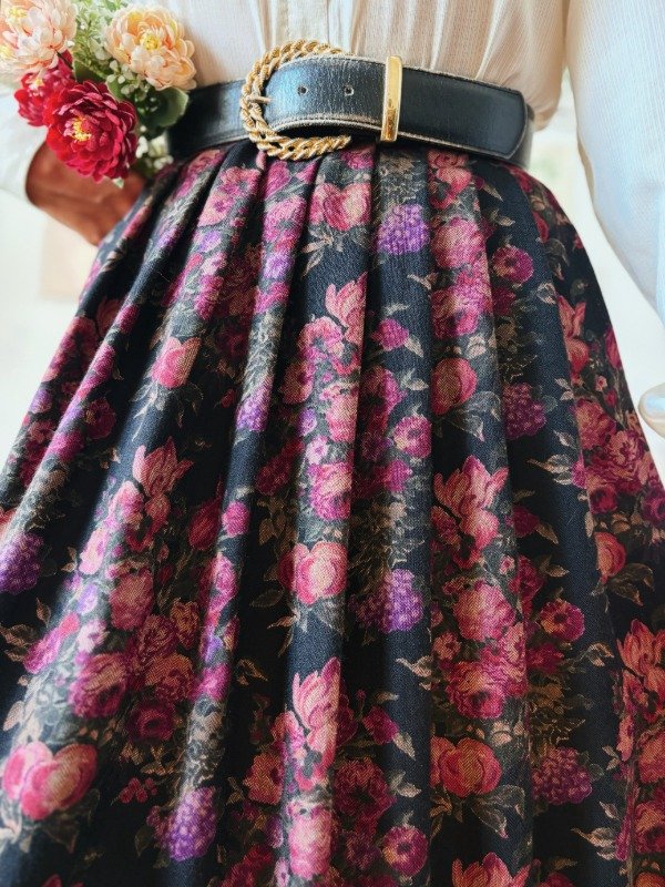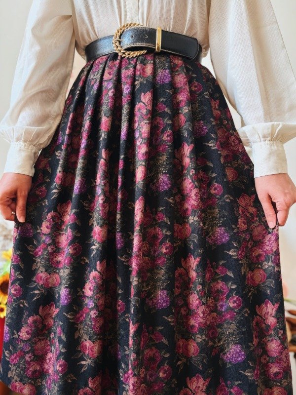 Falda con tablas hecha en USA, con un botón y ganchito metálico.