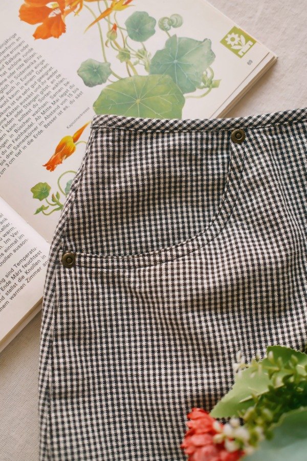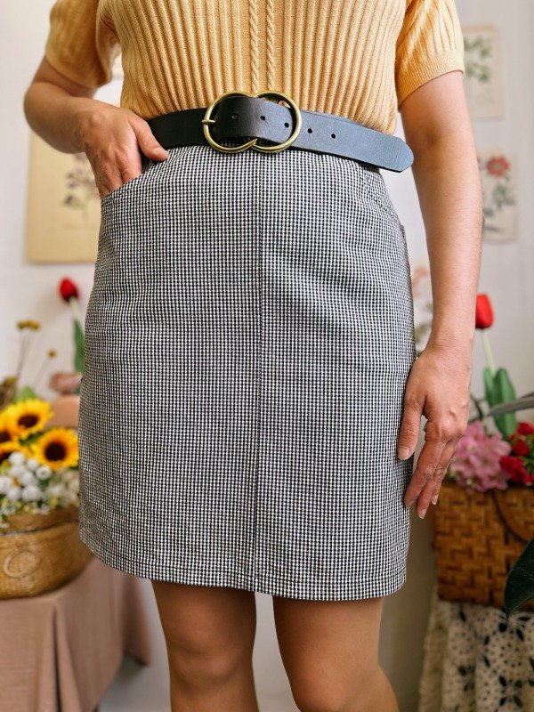 Falda Liz Claiborne con cierre lateral, botón y bolsillos.