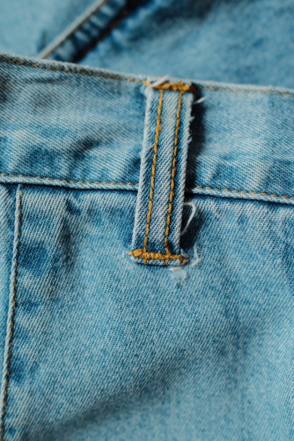 Detalles: arreglo con parche interno, marcas de costuras.