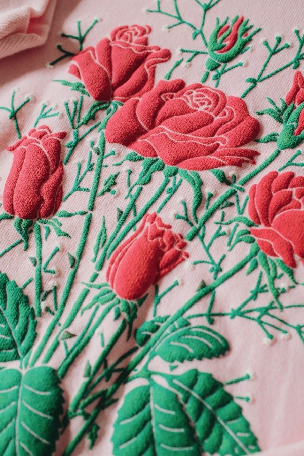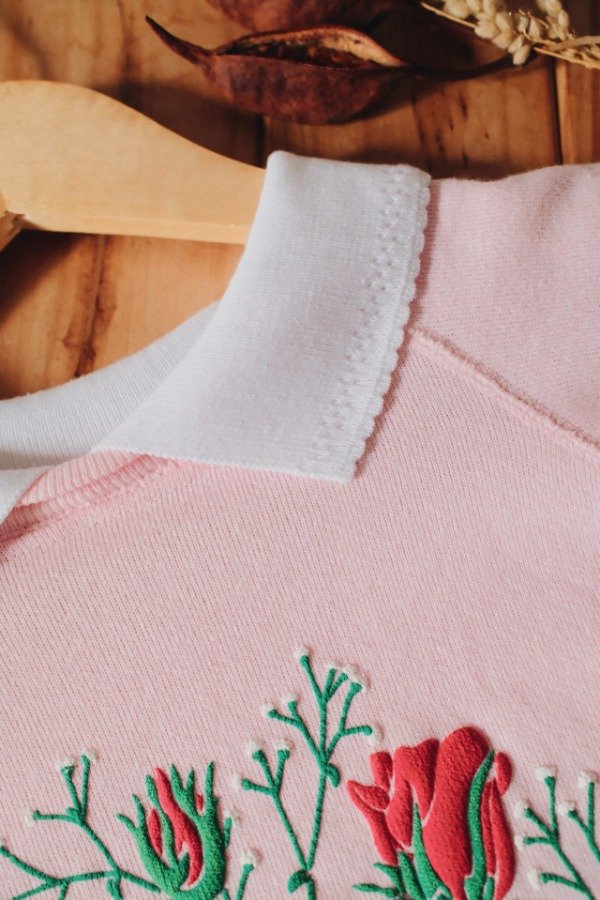Buzo estampadado con relieve y cuello tipo chomba combinado.