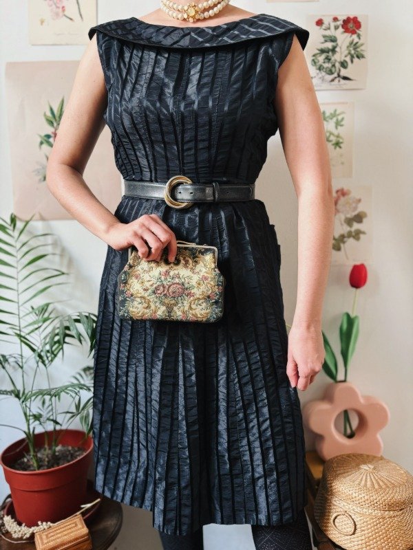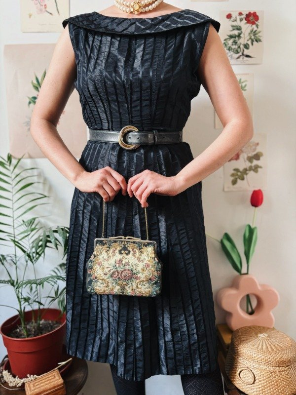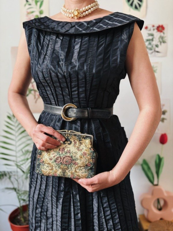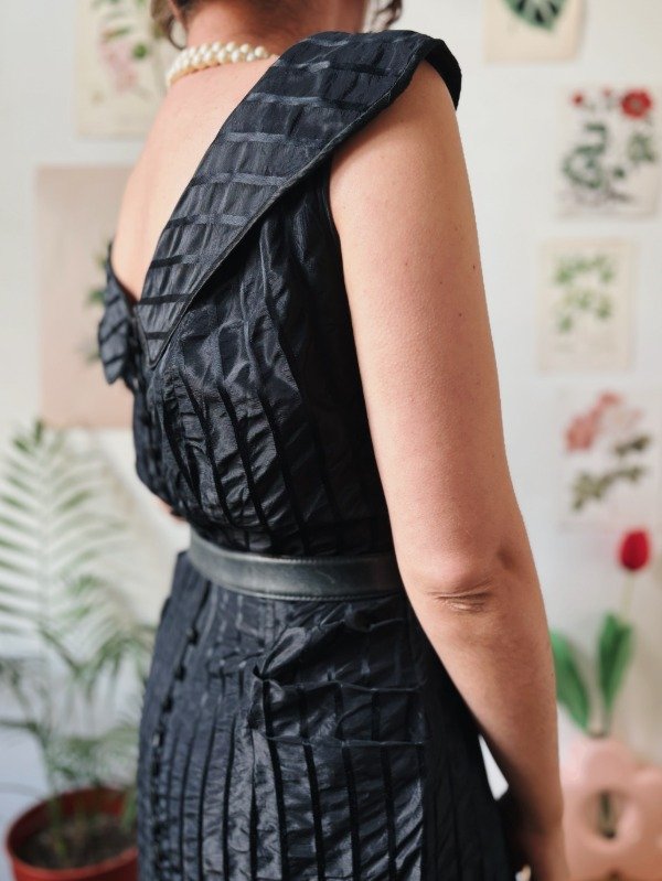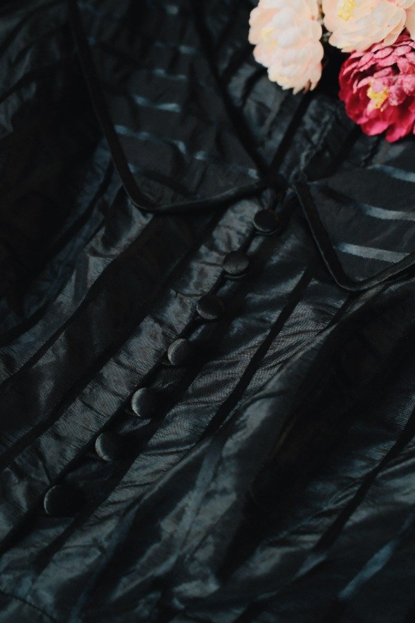 Vestido antiguo hecho a mano, con botones entelados en la espalda.