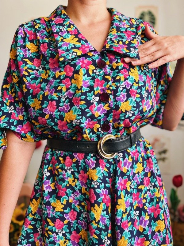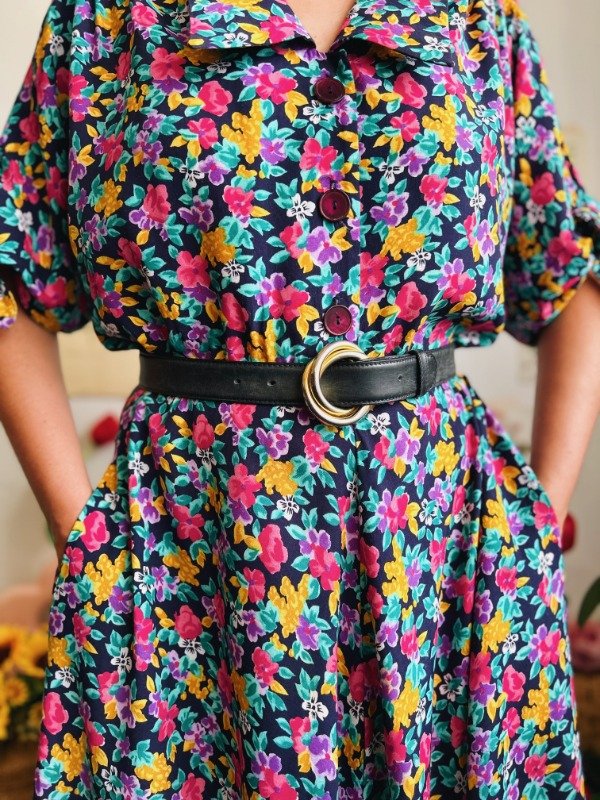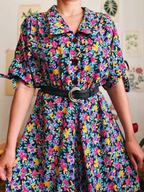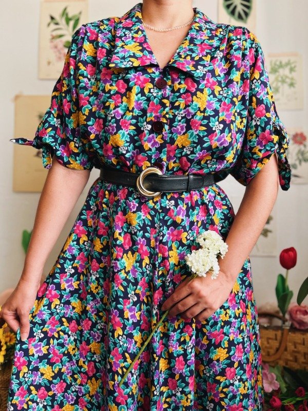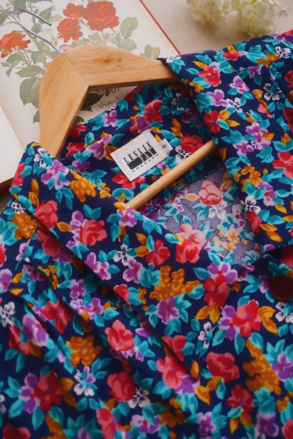 Vestido Leslie Fay con botones en la parte superior, elástico en cintura, lazos para atar en mangas y bolsillos.