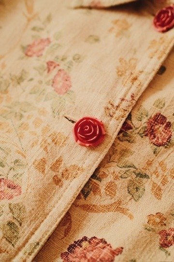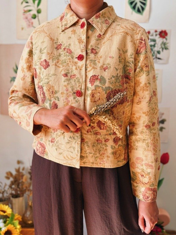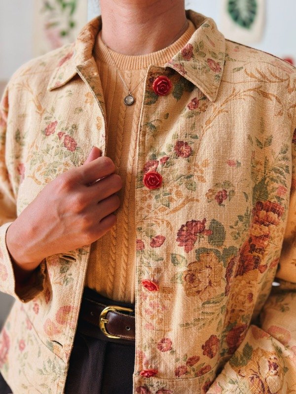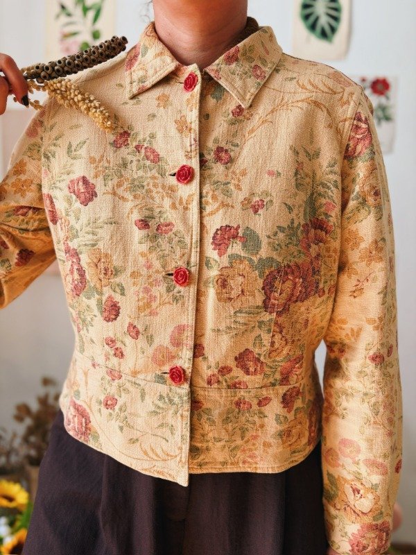 Campera estampada con botones en forma de flor.