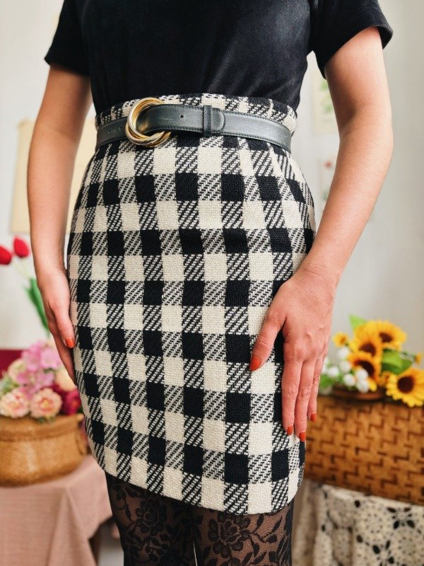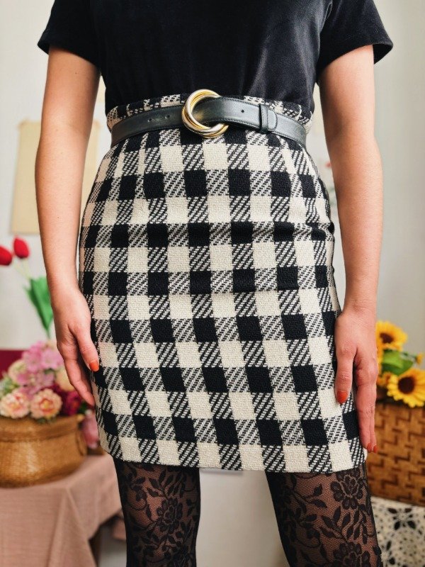 Falda con cierre trasero y ganchito metálico.