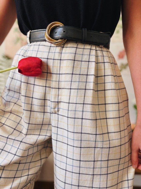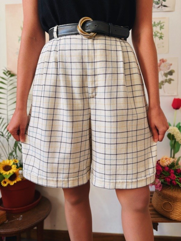 Bermuda hecha en USA, con un botón, cierre, pinzas, bolsillos y pasacinto.