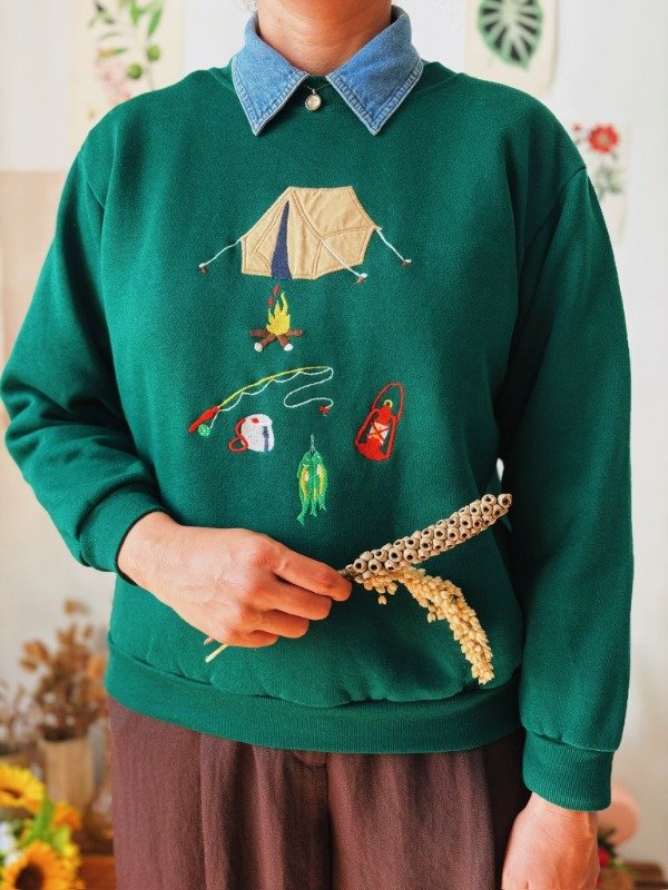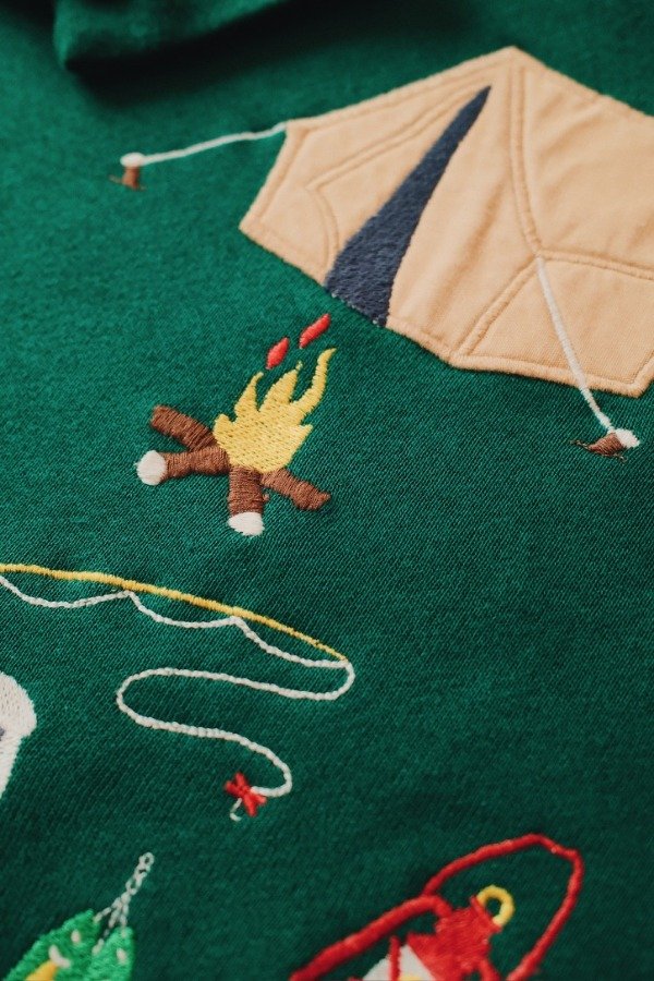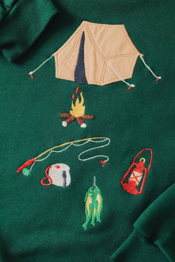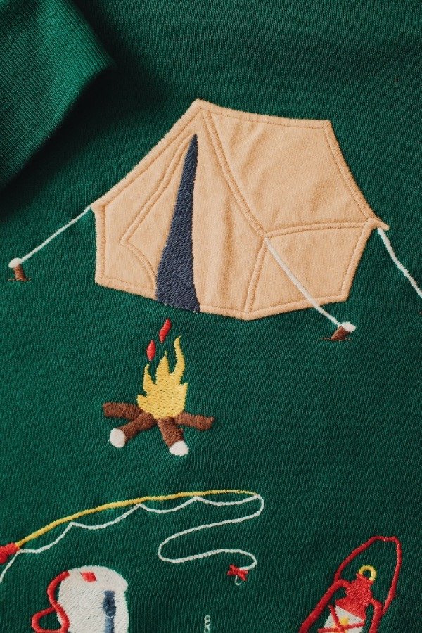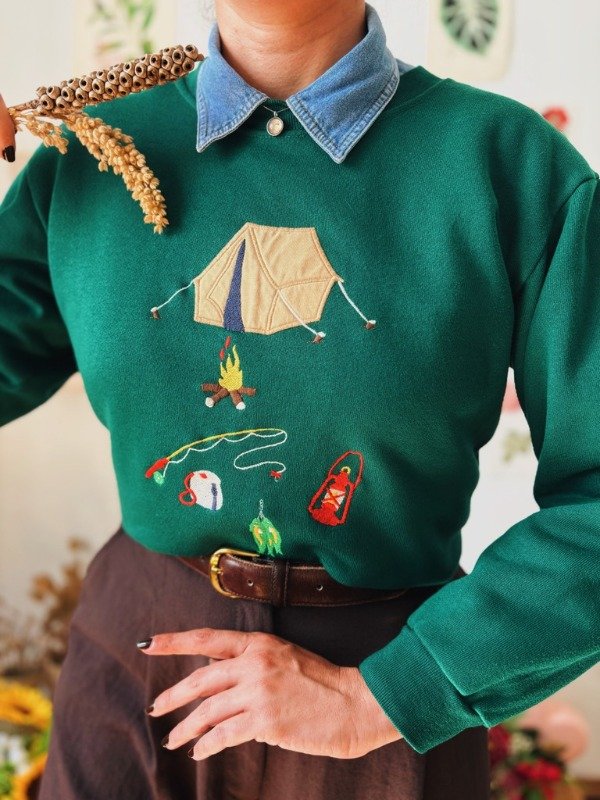 Buzo hecho en USA con bordados y apliques de tela.